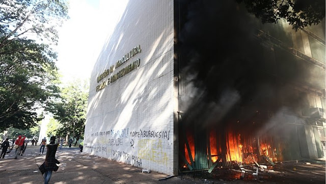 500 ônibus de bandidos e de idiotas úteis juntaram-se aos residentes em Brasília sem que a SSP/DF tomasse providências efetivas para controlar ou impedir essa aproximação de meios! Repito, incompetência ou conivência?